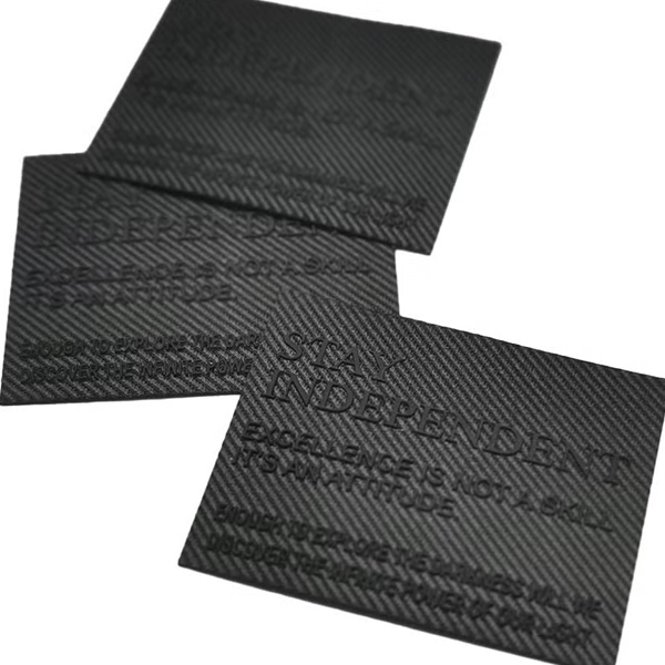 Environmentally conscious woven labels made from recycled polyester fibers, maintaining quality while reducing environmental impact.